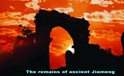 for both layers. The craved door and windows at around, the roof is with the tiles and animla at the range of the house. It was listed as the relic of province. jiange guchenghuan, building at the liusong dynasty, reach the scale in tang dynasty and in ming, it has been reformed and rebuilt for three times. Guchenghuan is coated with the stone slice and mud inside and decorates by the bricks with 1852 total length, 8 meters in height, 7 in density, significantly. The only standing south gate and south gate are with 467 meters at the both side are 467 ,meters. With the arrow tower at the both the city gate, it has been built at the ming dynasty and many reformation.